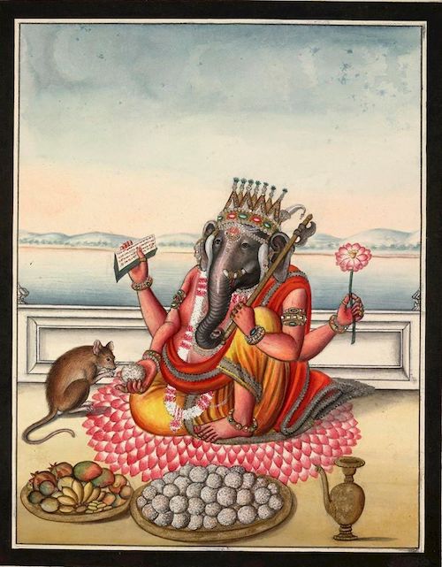 Dans le panthĂ©on hindou, « GaneĆa » le dieu Ă tĂȘte d’Ă©lĂ©phant , est lâune de mes divinitĂ©s prĂ©fĂ©rĂ©es. Son apparente bonhomie, son amour immodĂ©rĂ© pour les sucreries et sa monture des plus improbables – un rat du nom de «MĆ«áčŁika» – en font une figure attachante et populaire.